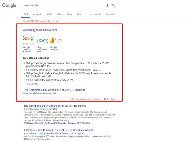E il peggiore di tutti … Lo snippet in primo piano: